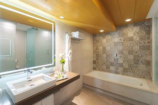 Large comfortable bed and bathroom. Plenty of space to put our stuff. There is wonderful infused water in the lobby. There was delicious candy, the staff generously gave some to me to bring home...