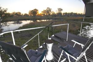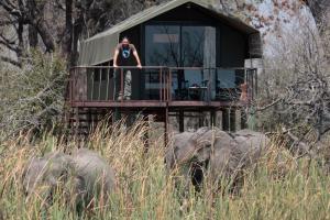 Our tent was raised quite high off the ground giving a great view across the river and into the bush. Elephant and Hippo walked by.Dinners were very good, taken at a long table on the deck with our...