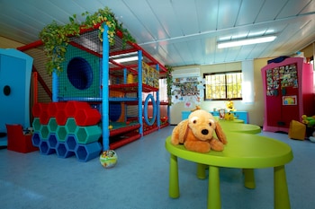 This place is great with kids. Not too fancy (say 5 star) but has everything you need. Heated indoor pool, place to play football for the kids and a easy going bar for the parents. Food was good. We...