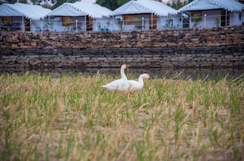 Very clean rooms ,amazing view with very delicious and organic food. Mornings here are beautiful. Chirping of birds and ducks is the only music u can here with star gazing and campfire. Very nice...