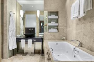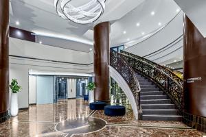 I stayed here for a week on business, in a deluxe suite on the 15th floor. Room is spacious and spotlessly clean, bed comfortable, and location is excellent. The only thing that lets this hotel down...