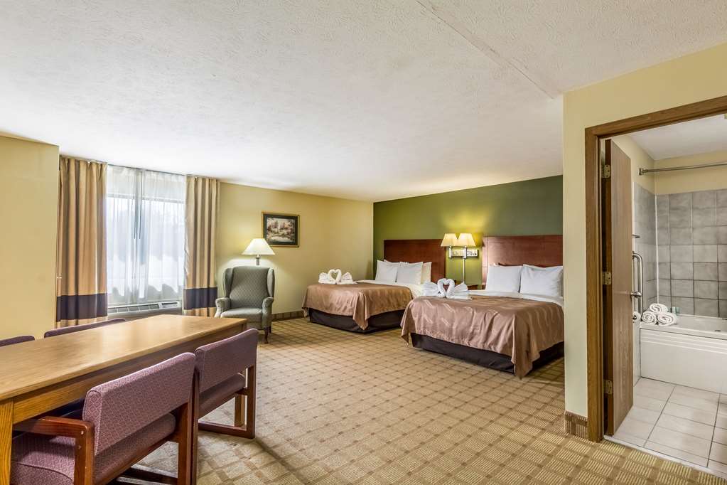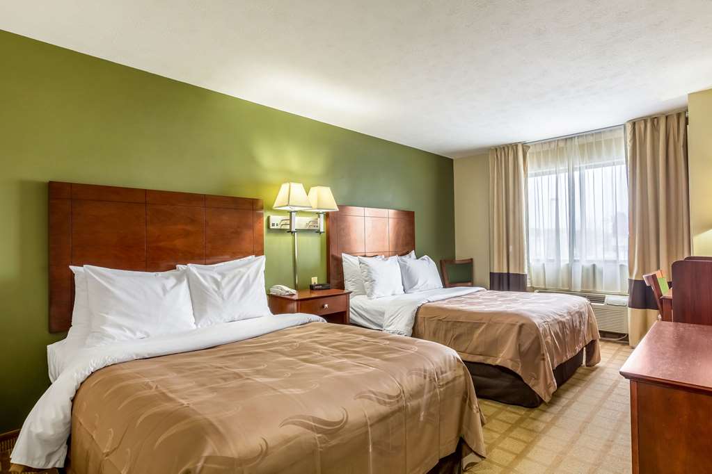 Had to stop because it was pouring down rain and had just got dark. i normally like Quality inns so I stopped here. I paid almost $100 for 2 double beds. The front desk employee was nice but had some...