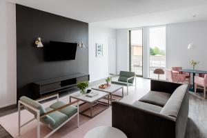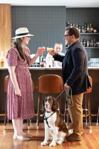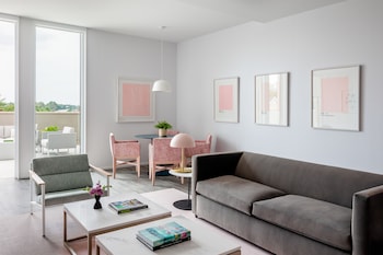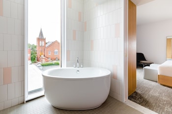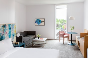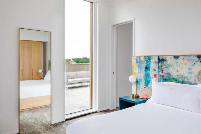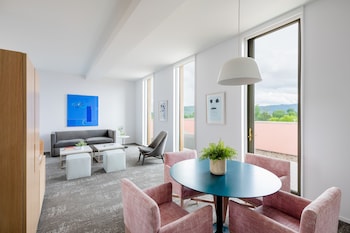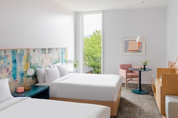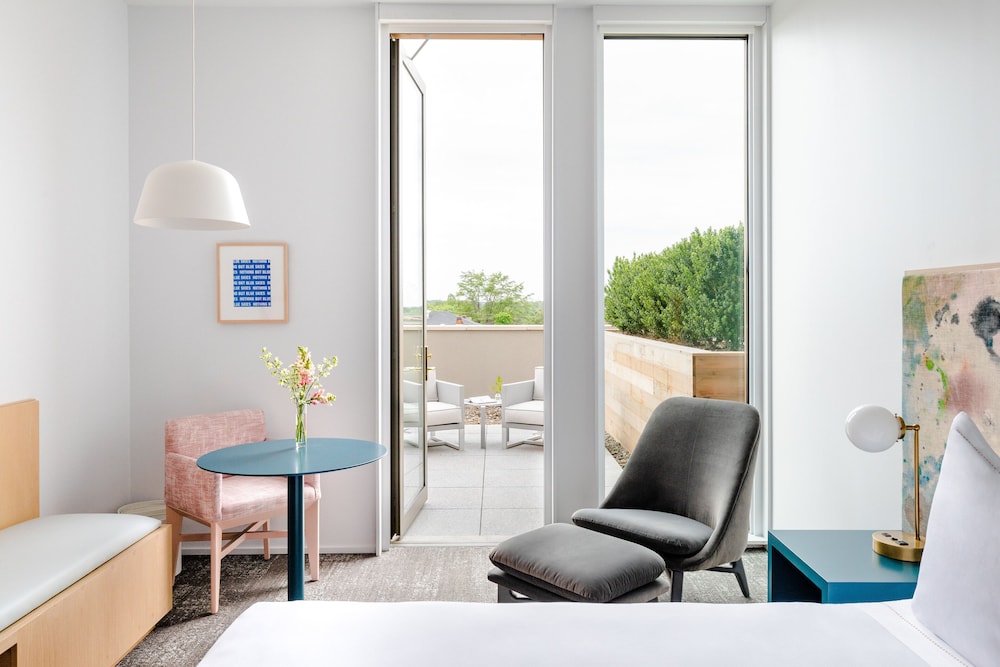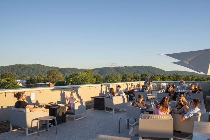 This hotel welcomes guests in Charlottesville.