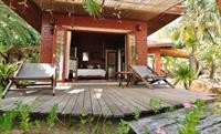 We stayed here for three nights. The beach is practically deserted and beautiful. The bungalow is in need of a renovation -- just look at the television in the rooms of the photos on their website...