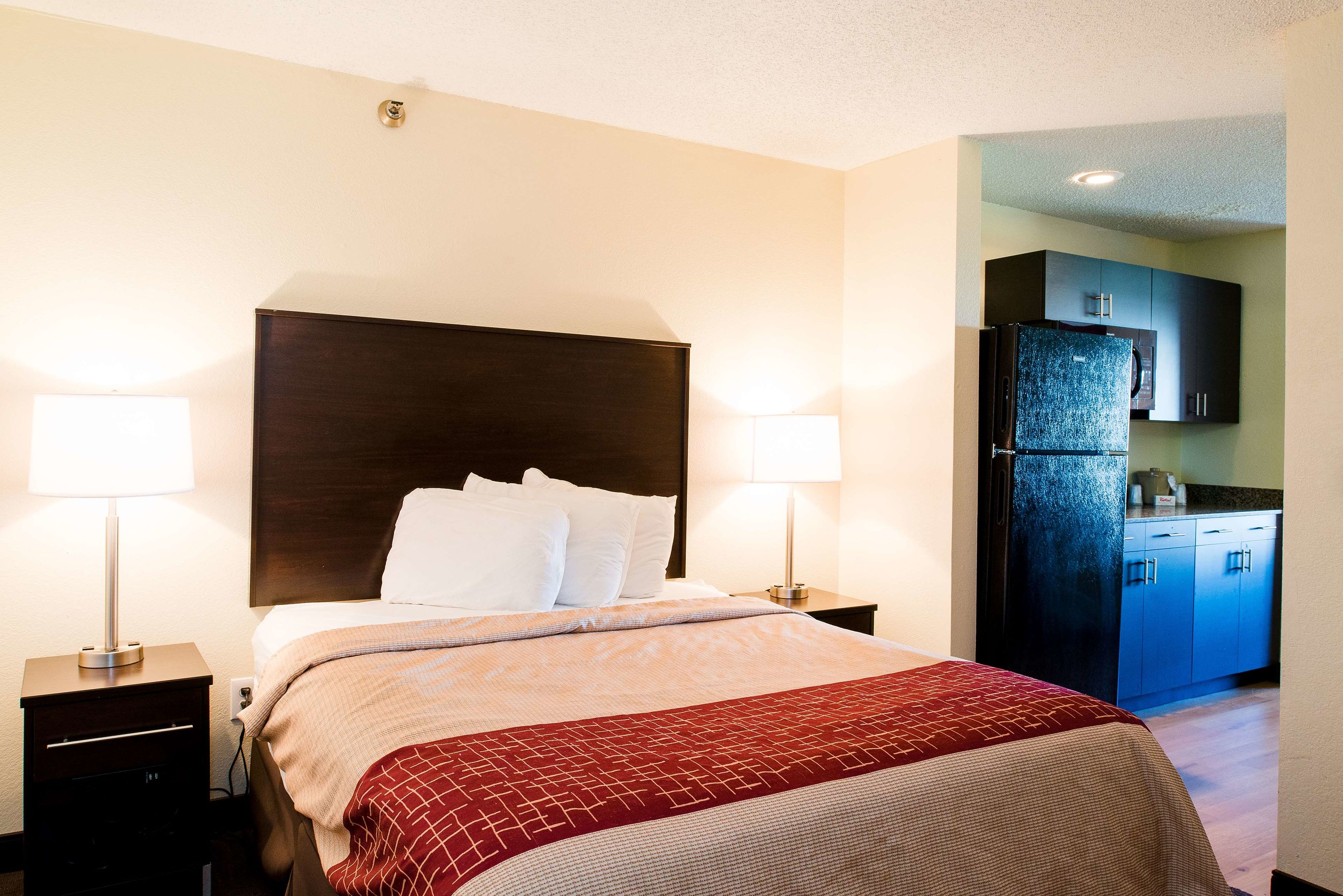 Stayed in a king suite which was actually a very cute room. Looks like they have made recent updates and improved decor. Loved the color scheme and true red theme. It is really budget but adequate I...