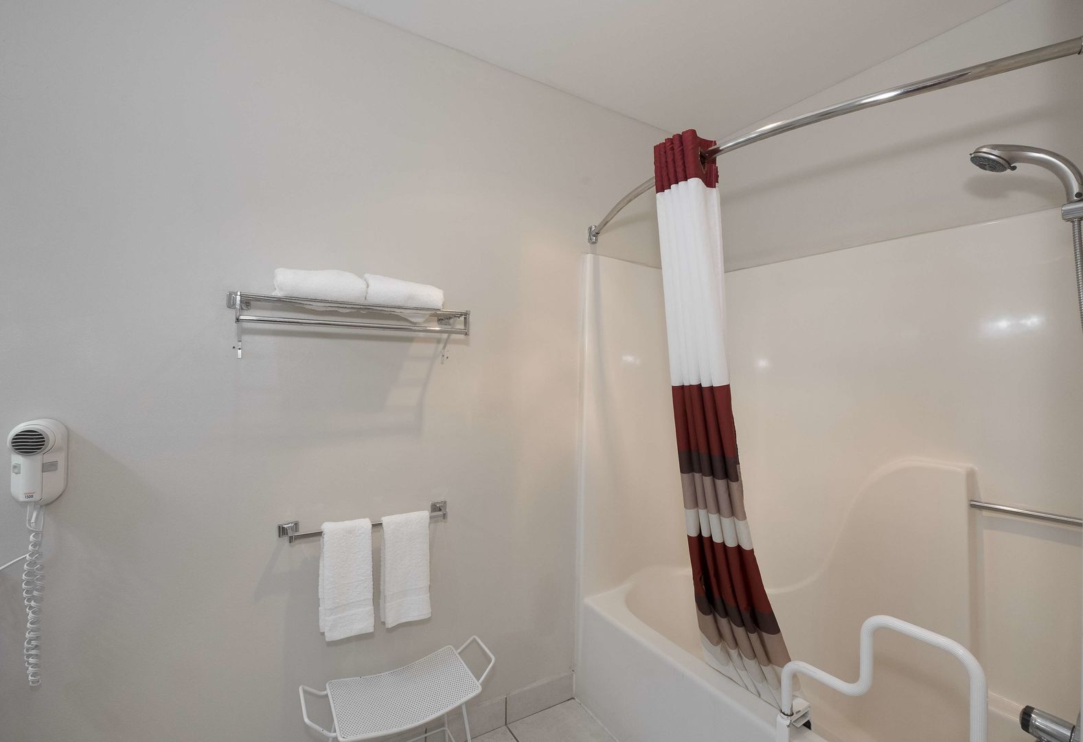 The only real bright spot to this stay was Stacy, whom we had the pleasure to meet @ check out. The room was OK and appeared adequately clean until we saw stains on the bedspread. Full bath with tub...