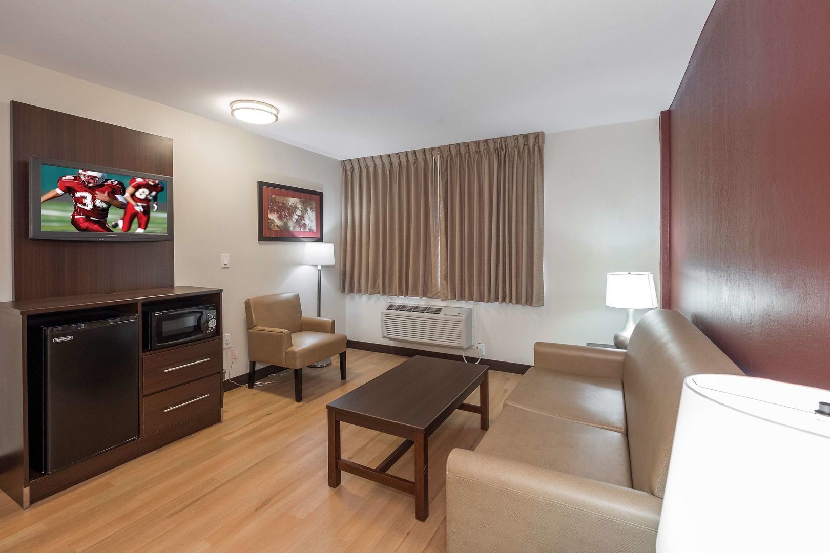 Make yourself at home in one of the 61 air-conditioned rooms featuring refrigerators and microwaves. 36-inch LED televisions with satellite programming provide entertainment, while complimentary wireless Internet access keeps you connected. Private bathrooms with shower/tub combinations feature complimentary toiletries and hair dryers. Conveniences include desks and coffee/tea makers, as well as phones with free local calls.