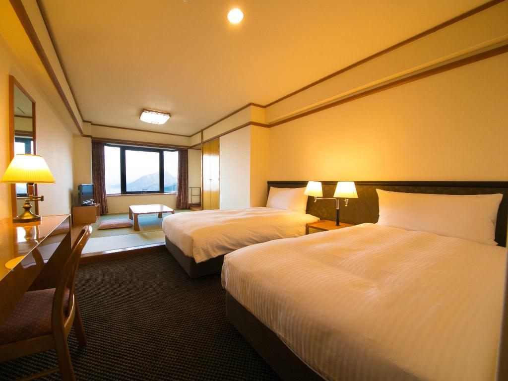 With a stay at Resorpia Beppu in Beppu, you'll be within a 15-minute drive of Hells of Beppu and Takegawara Onsen. This hotel is 5.2 mi (8.3 km) from Kijima Kogen Park and 6.1 mi (9.9 km) from Umitamago.