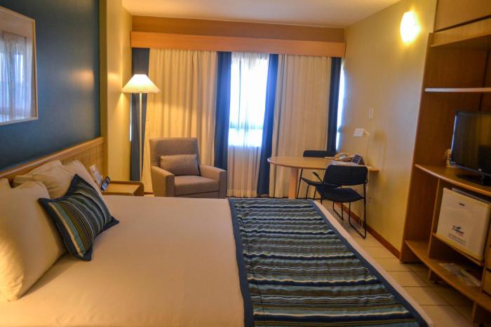 Os principais pontos que me chamaram a atenção é a cama, que além de confortável é enorme e o banheiro, que além de grande tem uma ducha mto boa. O quarto, assim como o hotel são bem limpos, café de...
