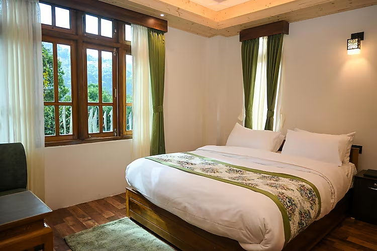 TRIPOO RHISUM THE HAAPO RETREAT stands out among the best hotels in Pelling for its serene location, modern comfort, and heartfelt hospitality. Nestled in Chumbung, the retreat offers stunning views of the mountains, making it an ideal escape for travelers searching for peaceful stays in the hills. This Pelling luxury hotel blends natural beauty with warm service, giving guests a relaxing and memorable experience.
