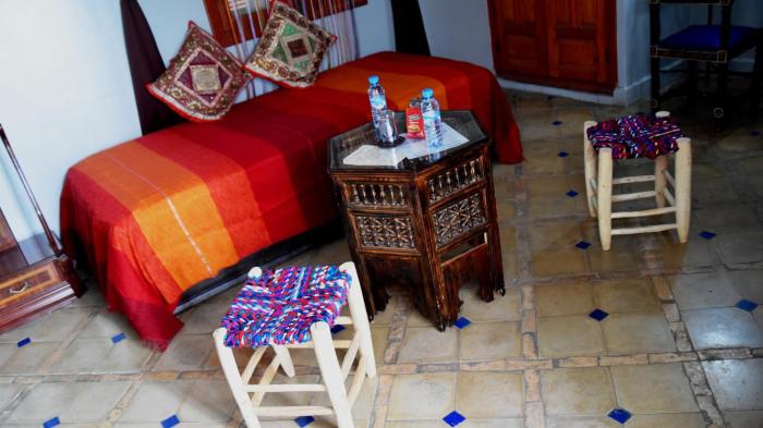 A riad with a beautiful moroccan style decor, nice breakfast, good value for money.