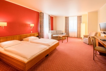 We booked this hotel through booking.com because it was close to Playmobil Fun Park. We were surprised, how nice it was. Huge rooms, friendly employees and very tasty meals in their restaurant. I...