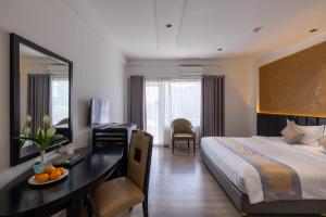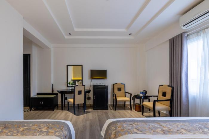 Big hotel at the river with a nice view and a small pool. Rooms are spacious and the staff is friendly. Nice breakfast. Located at the main touristic area with all the restaurants. It is a little bit...