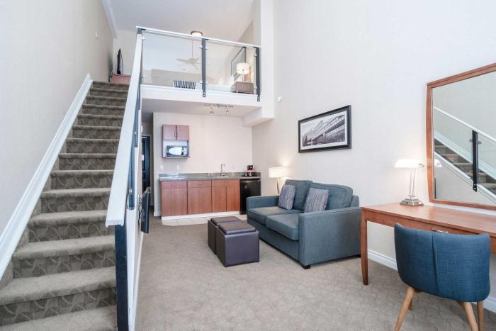 Stayed for 2 nights on the second floor in an executive king suite with mini kitchenette. Room was very large. King bed was in its own room with doors to shut off the living space. Kitchenette...