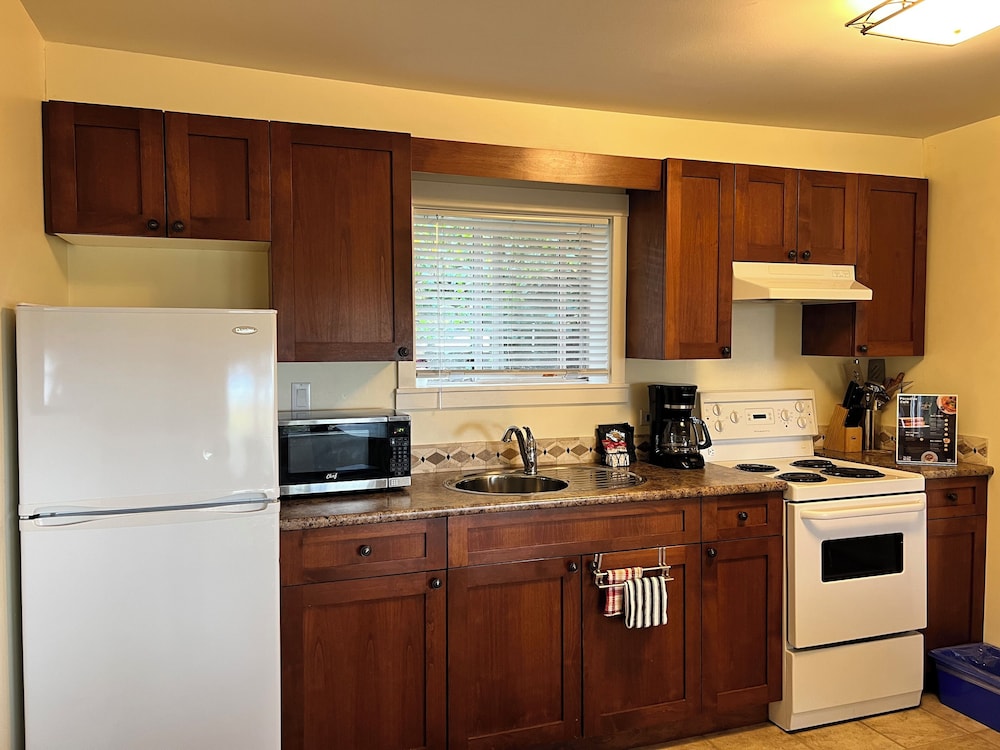 We stayed for two nghts. This motel while it looks ordinary from the highway the view is the best in Parksville. They have large rooms that all face the water. The kitchen was well stocked with...