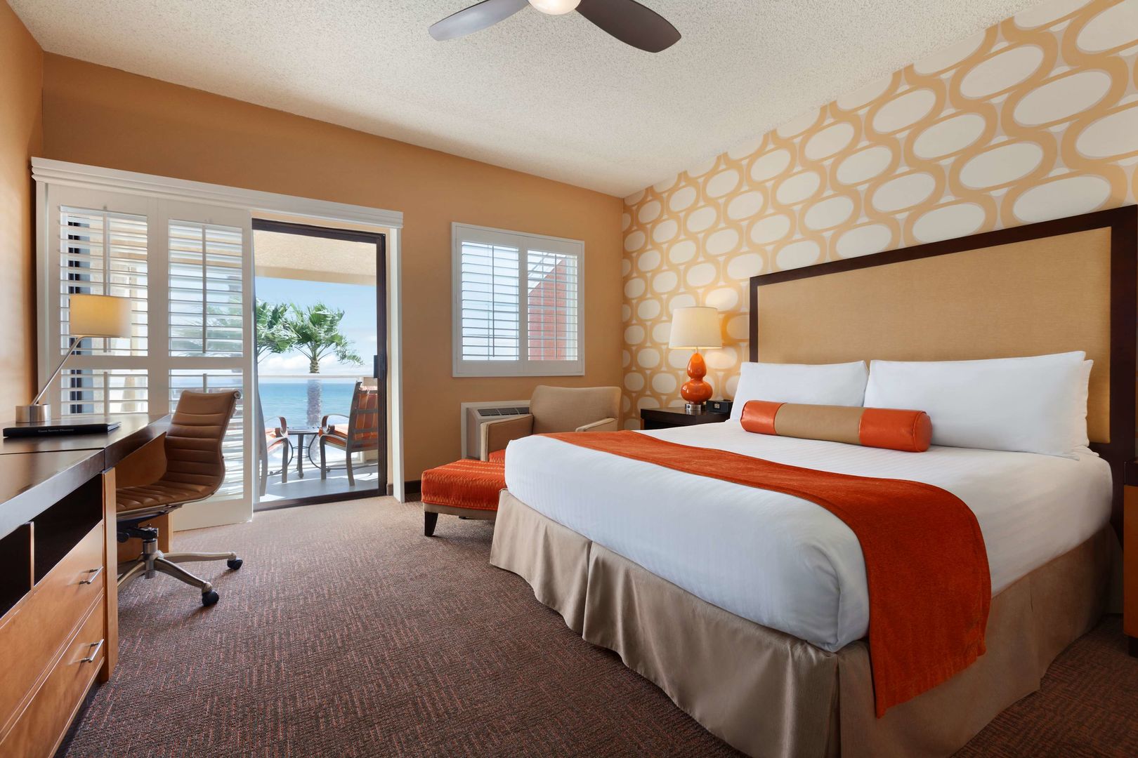 We had a great ocean front with beautiful views of the ocean. Room was large and very comfortable. The "orange" color scheme was a bit much, but easy to ignore. Continental breakfast has a variety...