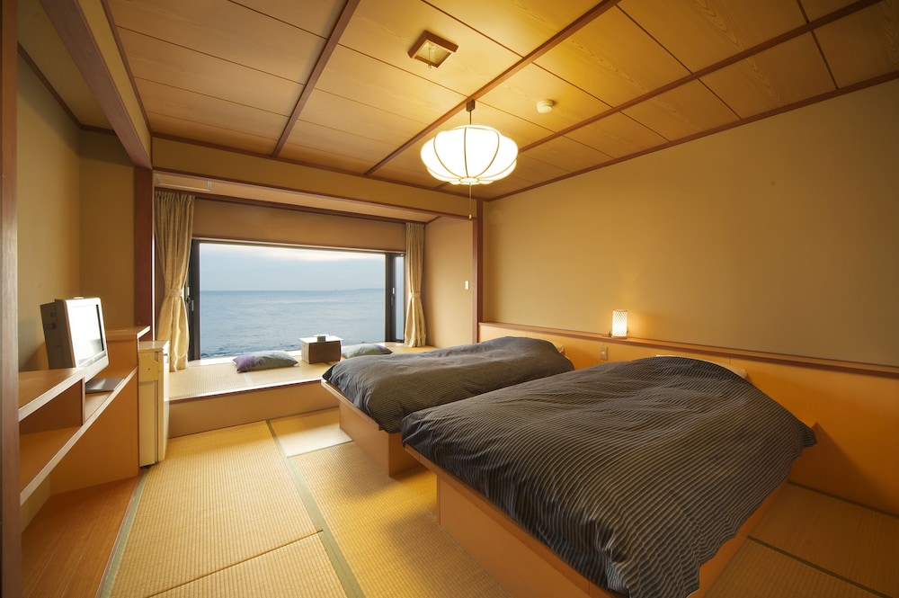 Service was great. Very comfortable and clean room with western beds facing the sea. Quality of food was great n the quantity far exceeded our capacity. Onsen water was good (ph8.5), hot and great...
