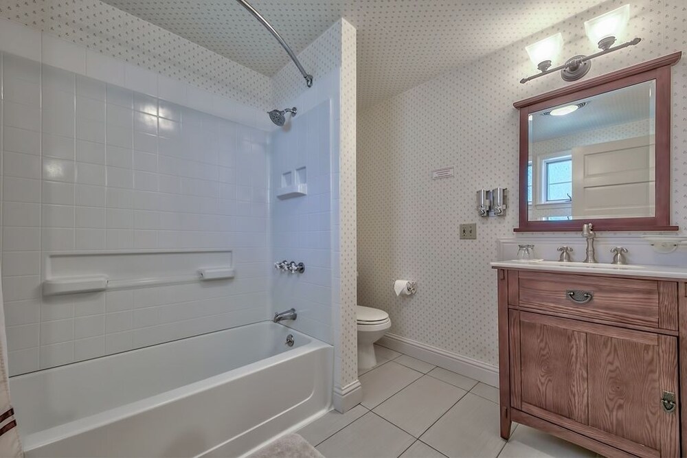 Lovely grass courtyard, fabulous tiled bathroom, and conveniently located