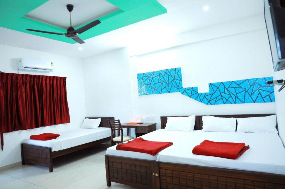 Situated at a distance of 1 km from Our Lady Of Dolours and 2 km from Thrissur KSRTC Bus Stand, Sky Star Residency offers breakfast service (chargeable) to its guests. This hotel in Thrissur maintains spacious rooms. Some of the in-room amenities include cable television, separate seating are and adjustable windows. The rooms have an attached bathroom with hot and cold water facility.