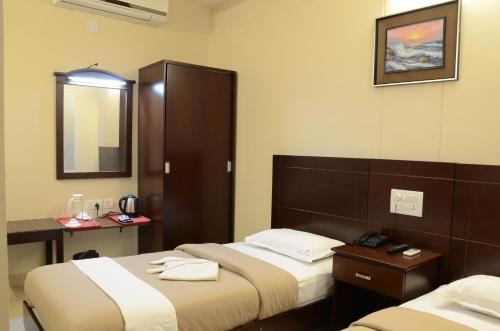 Situated in Coimbatore, Skylite Hotel is a 2 floored establishment welcoming the travelers in 28 rooms. Located at a distance of 0.8 kilometers from the airport and 10 kilometers from the bus stand this hotel is an ideal halt. Facilities like airport transportation on surcharge, internet access, a parking space, complimentary newspapers, laundry facility, travel counter, currency exchange, medical aid and backup generators have been provided.
