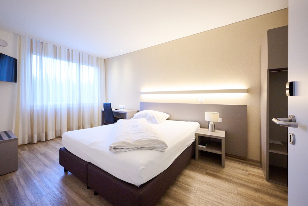 Check in erst nach telefonischer Rücksprache bei „Hotels“ möglich-sehr nüchtern eingerichtet, wirkt kalt aber für eine Nacht ok. Preis für 155.- ohne Frühstück etwas sehr hoch aber halt wohl ZH...