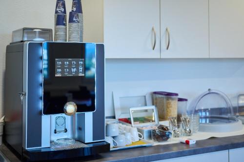 The secretary reserved the new hotel for me. I was sceptical because it is a self-check in. I was explained what to do at the automatic self check in. But it was so easy. There was no que to check...