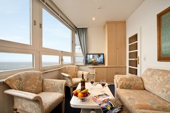 Location is perfect for Westerland with direct access to the beach or main street. Price was very high. Interior and outside of the building is outdated but inside is well maintained. Not for people...