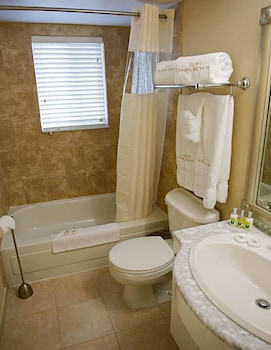 Make yourself at home in one of the 19 air-conditioned rooms featuring kitchens with full-sized refrigerators/freezers and stovetops. Your bed comes with premium bedding, and all rooms are furnished with sofa beds. Rooms have private patios. 37-inch LCD televisions with cable programming provide entertainment, while complimentary wireless Internet access keeps you connected. Partially open bathrooms with shower/tub combinations feature deep soaking bathtubs and complimentary toiletries.