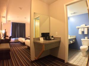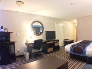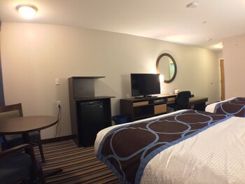 Staff is friendly and helpful. Rooms are updated and clean. Pool and continental breakfast are decent. Walking distance to Boston Pizza, McDonald's and A&W. Free passes to full service gym right next...