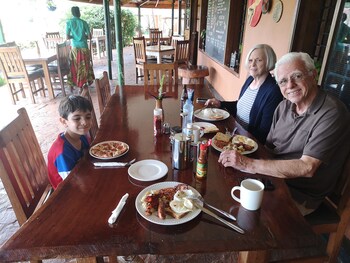 We were a large group and enjoyed the wonderful service by the staff. We would order our meals ahead and they would be ready--no waiting--both breakfast and dinner. I tried the pizza, calzone...