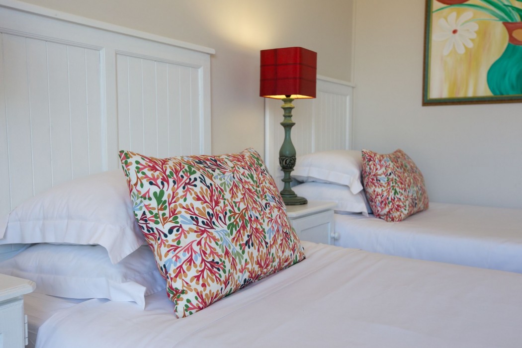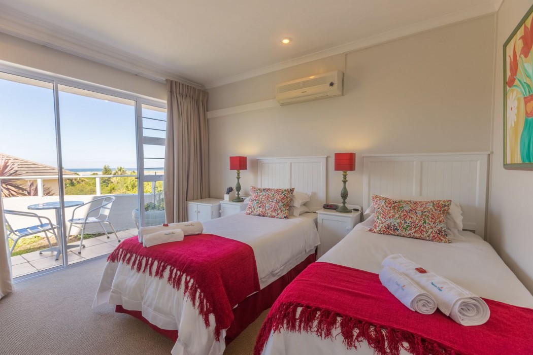 Twin bed room, sea and mountain views