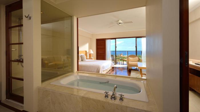 When you stay at The Atta Terrace Club Towers in Onna, you'll be next to a golf course, a 1-minute drive from Ryukyu Islands and 6 minutes from Mission Beach. This 5-star resort is 11.2 mi (18 km) from Cape Maeda and 11.2 mi (18 km) from Blue Cave.