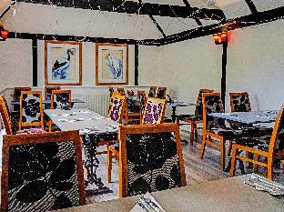 The dining area includes a restaurant and a café.