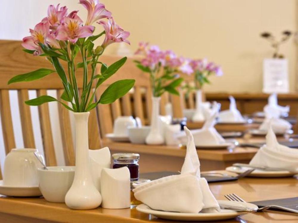 A complimentary English breakfast is served daily from 8:30 AM to 9 AM.