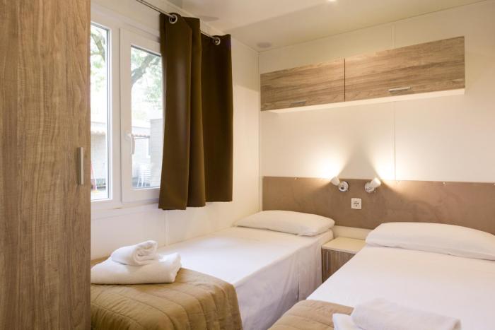 4 of us (2 adults+2 kids) stayed in a maxicaravan that had 3 separate bedrooms. This is a huge site that has everything in one compound including its own beach area on Garda. We stayed out of season...