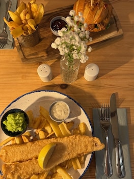 A great place to sit by the river and have drinks and food. A lovely autumn evening and location, Good beers, good service and dog friendly throughout. Lots of other places nearby too. Inside...