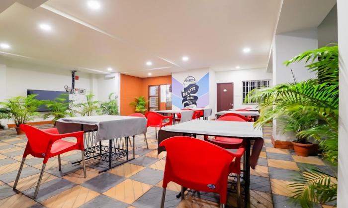 The hotel Treebo Trend Restr Inn is a 4-star rated accommodation in the lively location of Narendra Nagar, Nagpur is close to the airport and offers all a restful stay. They have a variety of amenities and guarantee a sanitized stay under Treebo Hygiene Shield safety standards. The hotel is close to transit points like St Bus Stand Nagpur (6.1 km), Dr. Babasaheb Ambedkar International Airport (3.2 km), and Nagpur Junction (7 km). Treebo Trend Restr Inn has a host of amenities like free WiFi, a complimentary breakfast of delicious cuisines, and a third-party laundry service. Other amenities include an elevator, an iron board, a fully stocked pantry, and a public washroom facility. They also have an air-conditioned lobby that comes comfortably furnished and a parking facility for 5 two-wheelers and 4 four-wheelers. The hotel also provides guests with private cab services on a chargeable basis and has a travel desk facility for any assistance. They also have prompt room services for the guests and 24x7 security. The hotel has an inventory of 18 rooms that are categorized as Oak (Standard) and Maple (Deluxe). They all come amply furnished as well. The sightseeing points close by this property include Shri Ganesh Temple (6.5 km), Ambazari Lake (6.6 km), Dikshabhoomi (4.5 km), Swaminarayan Mandir (9 km), Sakkardara Lake (6.2 km), and Sitabuldi Fort (7.7 km). Guests can try out a variety of cuisines in eating outlets like The Highway Smokehouse (1.3 km) and Aahar (750 m). In case of emergencies, there are hospitals like Orange City Hospital & Research Institute (2.9 km) close by.