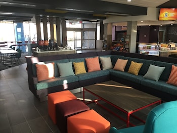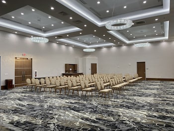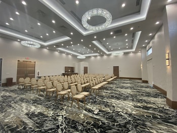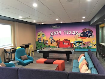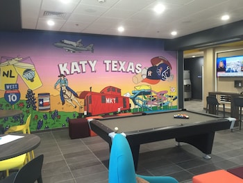 This hotel warmly welcomes guests in Katy.