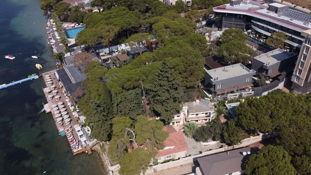 Ideal for beach vacationers, families, young people, singles and nature lovers, this boutique hotel is located right by the sea, on the outskirts of Kusadasi. Guests can reach the center after about 3 miles. There is a bus stop just outside the door.