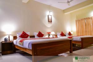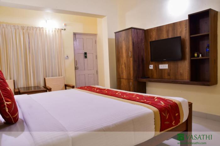The Yatra SMART choice property comes with a promise of 8 assured amenities, money-back guarantee and priority helpline support. You also get free cancellation and standardized prices through the year.Offering internet access and breakfast service Hotel Vasathi is a budget hotel in Madikeri, situated 117 km from Mysore railway station and 1 km from Madikeri Fort.Arranged on a 2 floor, the hotel in Madikeri accommodates a total of 15 well-appointed rooms. Rooms include conveniences like wardrobe and wake-up call service.Spa, restaurant, 24-hour front desk, travel counter and parking facility are few of the conveniences offered at Hotel Vasathi in Madikeri.