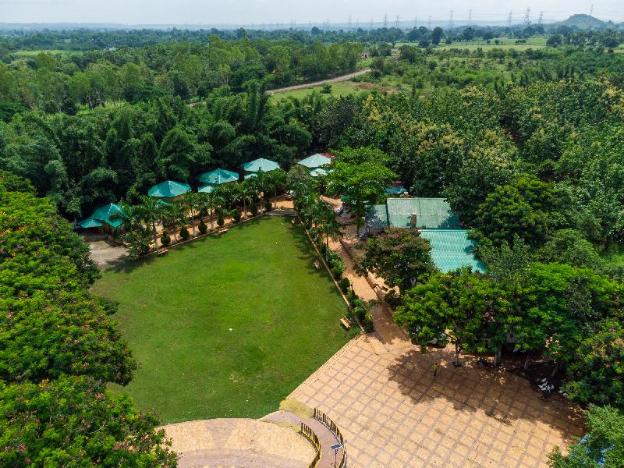 The hotel lets guests stay in tents. The tents are air-conditioned. Each tent has a double bed that can accommodate at least 3 people, a full-length wardrobe for guests to keep their things in. There is an attached bathroom with shower facilities that spout both cold water and hot water.