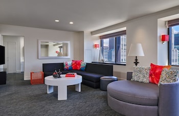 Opportunity to stay for 4 nights at the W San Francisco to attend a conference. Hotel is adjacent to SFMOMA and close to many other city venues. Hotel lobby was a little dark and a bit loud, which is...