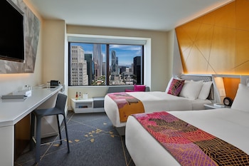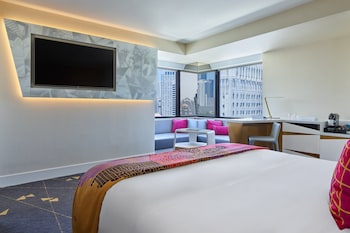 Very big and nicely decorated rooms and bathrooms. Big, comfortable bed. People who work in the hotel are kind and helpful. Very good location, close to everything. Hotel has a lot of homeless...