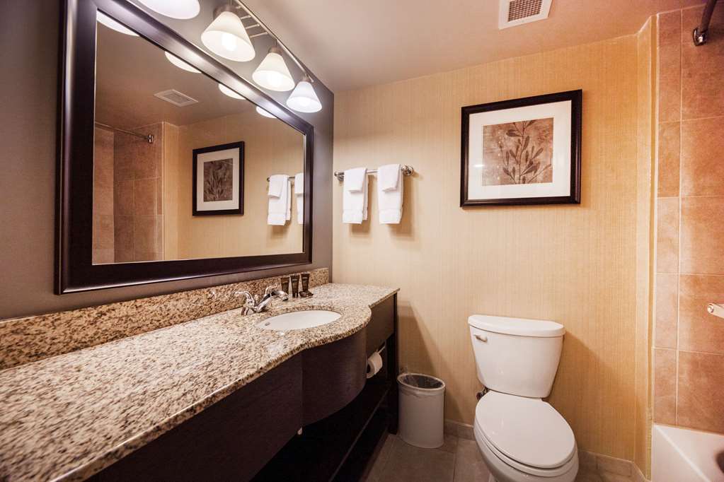 Our room was handicapped and ended up getting all of our clothes wet in the bathroom while we showered. The shower curtain never stayed closed and got the seat (outside of the shower) and the entire...